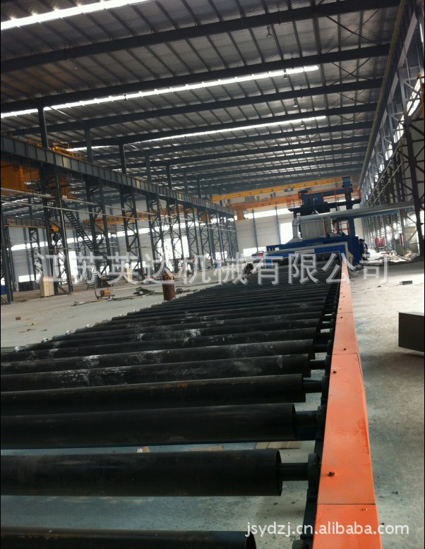 本鋼材預(yù)處理是在國(guó)內(nèi)外同類(lèi)產(chǎn)品的基礎(chǔ)上,開(kāi)發(fā)的機(jī)電一體化的新產(chǎn)品,整條流水線采用進(jìn)口工業(yè)PLC機(jī)控制,實(shí)現(xiàn)了從上料→送進(jìn)→拋丸清理→清掃→噴漆→烘干→送出全過(guò)程自動(dòng)化(并可以自動(dòng)和手動(dòng)進(jìn)行切換),操作方便自如,是目前對(duì)鋼板、型材、結(jié)構(gòu)件進(jìn)行表面除銹、除焊渣去應(yīng)力、噴漆、等預(yù)處理的理想的自動(dòng)化成套設(shè)備。